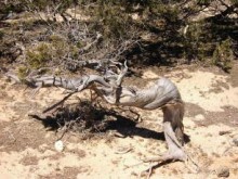 ![]() ![]() Foto 4 – Ginepri. Esposizione ai venti, salsedine e siccità hanno prodotto tronchi e rami avvolti a spirale e vaste porzioni di legno secco. |